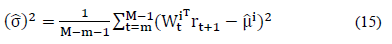 Por último la varianza de los portafolios estudiados bajo la metodología rolling horizon se calculó a partir de la ec.(15), donde rt+1 corresponde al rendimiento del portafolio en la iteración t+1 , indica el peso de los activos en la iteración t el portafolio i de mínima varianza.