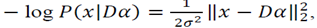 In this formulation, the dictionary D is given and L controls the sparsity of x in D. The term