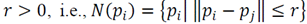 The size of the neighborhood is calculated according to the local characteristics of points like density and curvature, and its size is increased or decreased. To achieve this, a method -such as that proposed in [42]- is used to estimate the size of the neighborhood, taking into account the local characteristics named.