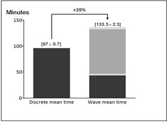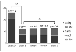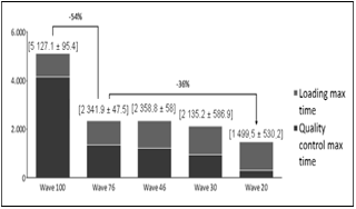 In Graphs 7 and 8, it is possible to see a significant reduction in expedition dock utilization for 76% and 46% of vehicles checked while the reduction between Wave46 and Wave30 is smaller. This reduction happens because loading process becomes each time more significant, reducing gains as the reduced number of vehicles checked