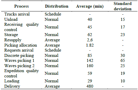 Data collection, which was facilitated by the company that provided a significant amount of information from their operation. It was considered a run time of 3 months; this period gives us a real understanding of operational peaks, usually concentrated in the last week or even the last day of the month. The research uses deterministic data to determine in what time the supply trucks and the requests arrives in the system. Processing times were modeled, and their distribution and parameters (mean and standard deviation, for example) were established as shown in Table 2.