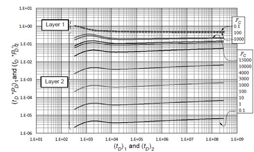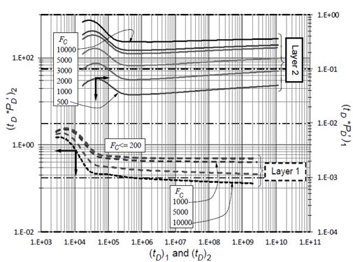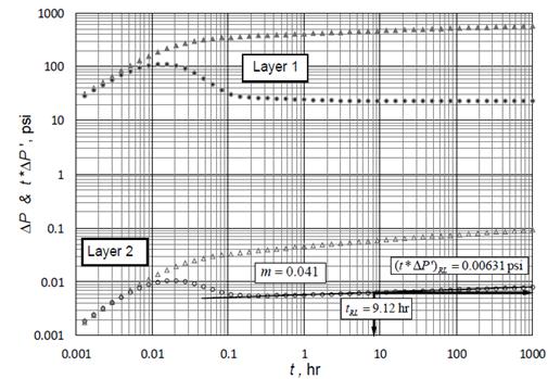 Since the pressure derivative at layer 1 does not register any change, all the expressions were developed following the same procedure used in case 1 only for layer 2 in order to obtain conductivity expressions:
