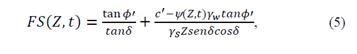 donde c’ es la cohesión efectiva del suelo, ϕ’ el ángulo de fricción efectivo, γ w el peso unitario del agua, γ s el peso unitario del suelo y ψ(Z, t) la cabeza de presión en función de la profundidad Z y el tiempo t. En Baum et al. (2008) [15] se tiene información detallada del modelo TRIGRS.
