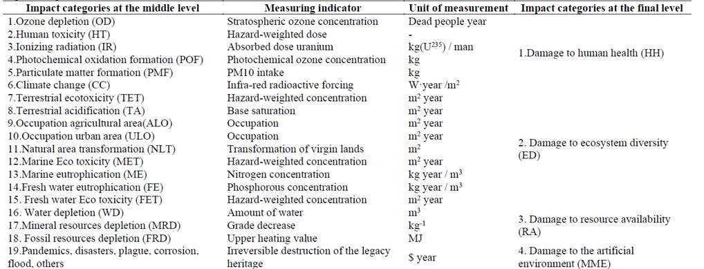 Table 1: Impact categories at the middle and final level of the environment.
