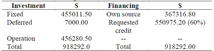 The requested loan will have a term of five years at an annual interest rate of 12%, with equal half-yearly payments and a semi-annual fixed fee of $84,040.35. Table 3 presents a general balance sheet of the company [13].