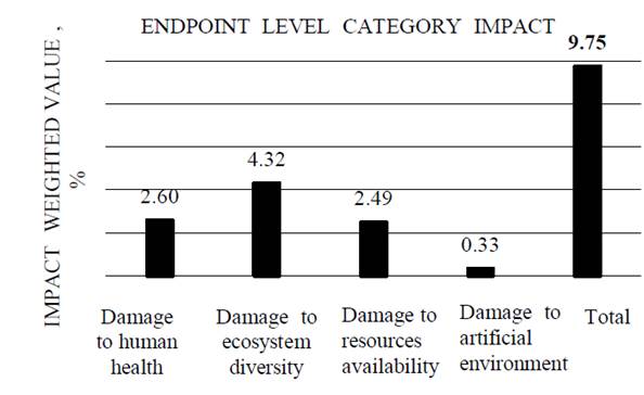 Figure 3. : Weighted average assessment of the potential environmental impact (4 endpoint level) of castor oil plant biomass.
