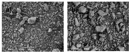 La Tabla 1 muestra que aproximadamente el 80% en peso del RM está compuesto de SiO2, Al2O3, y Fe2O3. La distribución del tamaño de particula y la morfología del RM y el OPC anhidro se muestra en la Fig. 3 y Fig. 4 respectivamente. Como se puede observar en la Fig. 3, el RM presenta un rango más amplio de tamaño de partícula en comparación con el OPC. Los tamaños de partícula promedio del RM y OPC fueron de 24,09 ± 0,02 μm y 21,65 ± 0,02 μm, respectivamente. En la Fig. 4, se puede observar que RM y el OPC presentan partículas de formas angulares e irregulares.