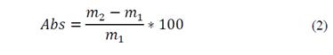 Donde Abs es el porcentaje de absorción de agua, m 1 es la masa del prototipo seco y m 2 la masa del prototipo húmedo, ambas expresadas en gramos.