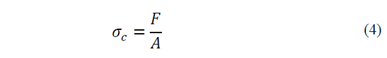 Donde σ c es la tensión máxima del espécimen expresada en N/m2 (Pascales), F es la fuerza expresada en Newton y A es el área de la sección de la probeta donde es aplicada la carga, la cual se encuentra expresada en metros cuadrados.