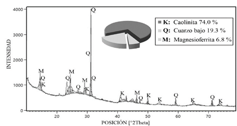 Figura 3. : Patrón de difracción y porcentaje en peso de las fases que componen los polvos de caolín.