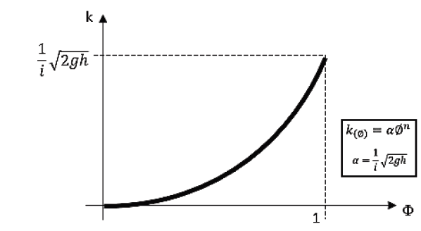 relationship expresses the hydraulic efficiency of the interconnected pores. The