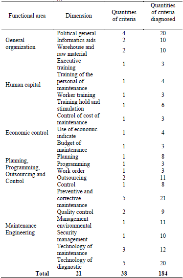 management maintenance, diagnostic method, diagnostic criteria, functional area.Resumen