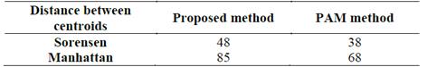 Table 1: Comparison of distance between centroids in proposed method and PAM method.