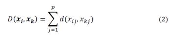 With d(.,.) given in Equation (1). For case p=1 D(.,.) = d(.,.)The definition in (2) is a value in R. It is the count of non-coincidences and its properties are derived from the metric defined in Equation (1). Fig. 2 presents the pseudo-code of this part of the proposed method.