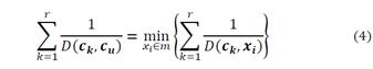 Similarly, the other initial centroids C r, r=3…k,, are found. That is, the first initial r-centers (seeds) are identified; the initial r + 1-th center is the vector c u ∈ m such that: