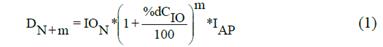 En donde: i) DN+m = Demanda agregada de la EEIFR-EC para el año m; ii) ION = Ingresos Operacionales Netos a pesos constantes del año z hasta el año n; iii) IAP = Índice de ajuste al pronóstico; iv) %IcK = Participación del factor económico k incluido en el análisis de entorno económico a saber: Crecimiento de la economía empresarial, sectorial, local, regional, nacional e internacional; y v) %dCIO = Tasa anual de crecimiento del ingreso operacional neto.