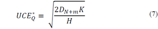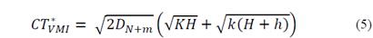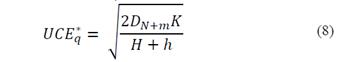 En donde: i) CT * VMI = Costo Total del Inventario Conjunto bajo Contrato VMI; ii) K = Costo de Ordenar una Corrida de Producción; iii) H = Costo de Conservación del Inventario en Fabrica; iv) k = Costo de Pedir una UCE; v) h = Costo de Conservación del Inventario en CEDIS; vi) E * VMI = Constante VMI de Gestión del Inventario Conjunto; vii) UCE * Q = Tamaño del Lote de Producción del Fabricante; y viii) UCE * q = Tamaño del Lote de Pedido del CEDIS.