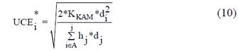 = Constante de cooperación de la UCE; iv) hj = Costo de conservar inventario por parte del agente j miembro de la coalición; v) di = Demanda cubierta por el agente j miembro de la coalición; vi) UCE