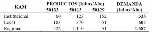 Tabla 1.: Costos Logísticos gestionados por los KAMs en el año 1.