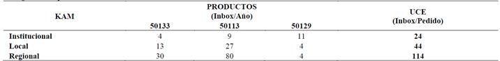 Tabla 6.: UCE gestionada por los KAMs en el año 1.