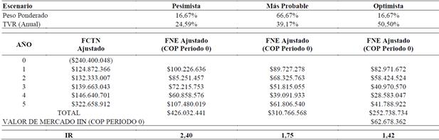 es moderado (21.09%); iii) la inversión se recupera alcanzado el tercer año de operación; y iii) el Índice de Rentabilidad (IR) supera la unidad en todos sus escenarios proyectados (Tabla 8).