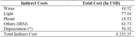According to Table 5, Water, electricity, telephone, depreciation and others are added to have the total cost of indirect production costs.