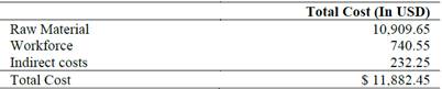 Total Cost = Raw Material + Workforce + Indirect Costs