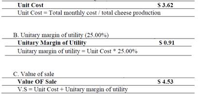 The research poses a current problem, because for the cottage industry it is essential to determine the costs incurred in the production of one kilogram (Kg) of cheese, establish the sale price and being able to determine the utility.