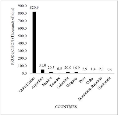 On a global scale, the first producer of milk is the United States of North America, followed at a distance by Argentina and Mexico, as shows in Fig. 1.