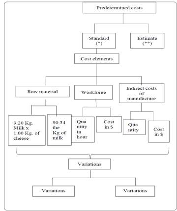 Inside the cost systems there exist, the predetermined costs: They are those that are calculated before the production process, they are of two types: Standard costs; they are the most exact and they are calculated mathematically or by means of observation; dear costs, they are those who are calculated by the experience, in many cases approaches are alone, as it itself they have error margin and therefore they are not the most appropriate, consequently its use is not advisable. The standard cost calculation represents that the costs should be under an achievable performance [5]. There are carefully predetermined costs and help to the managerial control.