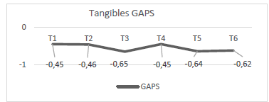 Fig. 5, shows the gaps in empathy. All the results have a high gap, between -0.7 and -0.9, this is the worst-ranked variable, and one of the most important to enhance quality service.
