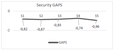 Fig. 4 corresponds to Security gaps. It was found here that the gaps do not exceed -1, being S4 the lowest. These results mean that users’ expectations far outweigh their perceptions, since none of the variables had a positive result, demonstrating that there is a great deficiency in service quality.