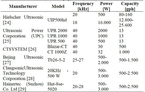 The ultrasonic reactor has specific operating characteristics (Table 2), which determine its operating time, power consumption, processing capacity and sonic radiation power.