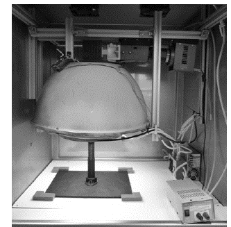 VIS-NIR Images: A total of 110 spectral images (hypercubes) were taken using two liquid crystal tunable filters (LCTF): one sensitive in the visible (Varispec VIS-07, CRI, Canada) with a spectral range between 400 nm and 720 nm and a resolution of 7 nm and a sensitive one in the near infrared (Varispec NIR-07, CRI, Canada) with a spectral range from 650 nm to 1100 nm with a spectral resolution of 7 nm. Both filters were coupled to a monochromatic camera (CoolSnap ES, Photometrics ©, Tucson, USA), with optics (Xenoplan 1.4 / 17 mm C-Mount, Schneider, Germany) that allows to maintain the focus at all wavelengths. Lighting was controlled by a hood with hemispherical diffuser and 12 halogen lights (Philips A6, Brilliantline 12 V - 20 W) (Fig. 2). To control the parameters of image acquisition, it was necessary to automatically synchronize the filters with the camera using a software program developed for this work.
