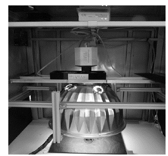 NIR images: A total of 220 hyperspectral images in the range between 900 nm and 1700 nm were taken, using an image spectrometer (ImSpector N17E, Specim, Finland) coupled to a sensitive camera in the infrared (Xenics XEVA-USB 2.0; XenicsVision, Leuven, Belgium). Lighting was controlled by a hood with a hemispherical diffuser and 12 halogen lamps (USHIO, Eurostar IR 12 V - 37 W) (Fig. 1).