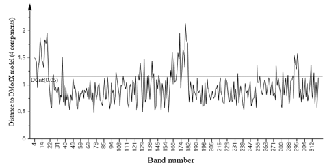 Figure 3. : Distances to model X [4 Components] (PLS-DA), NIR spectrum, experiment A.