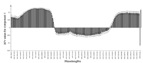 In Fig. 6, the wavelengths are displayed in the X-axis against the weight of such wavelengths in the first component.