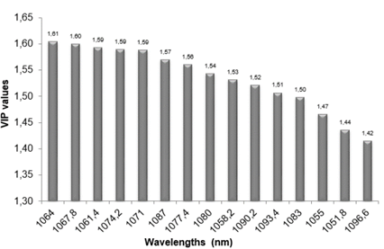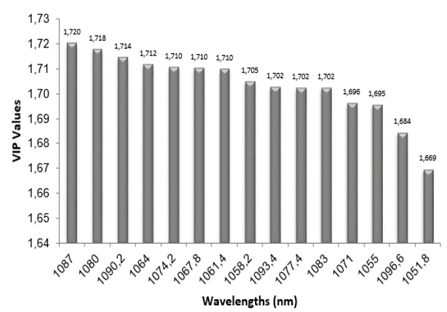 Figure 12. : Variable importance for wavelengths projection (VIP) with greater discrimination power for experiment C