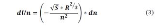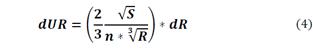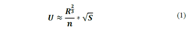 Here U is the average velocity of the flow, R is the hydraulic radius, n is the Manning Number, and S is the slope of the energy line.