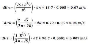 It is now necessary to establish an approximate numerical estimate of the variations of the factors associated with the definition of the average speed according to the Chezy-Manning equation.