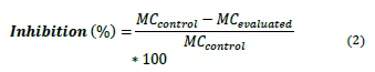 The percentage of inhibition of the strains was calculated [22], according to equation 2: