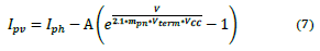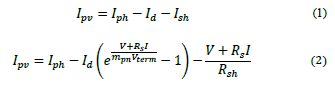En un circuito ideal, las resistencias Rs y Rsh pueden ser despreciadas, sin embrago se utilizará el modelo de la Fig. 1. Así, la ecuación que expresa la corriente entregada (I pv ) en la carga será dada por las Ec. (1) - (2).
