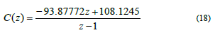 Para la aplicación del control de tensión del bus CC, se desarrolló un controlador discreto a través del método indirecto de proyecto de controladores, se proyectó el controlador en el dominio continuo de la frecuencia y luego se transportó el resultado para el dominio de tiempo discreto haciendo uso del método de Tustin, para el diseño del controlador clásico por la técnica de asignación de polos. A continuación, se utilizó el método de Tustin para la obtención del equivalente discreto del sistema, con el tiempo de muestreo de 0.01 segundos, obteniéndose la relación (18). La Tabla 4 representa las especificaciones de rendimiento utilizadas para el proceso de obtención del controlador clásico.