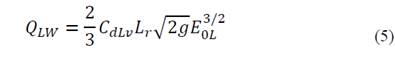 For lateral inlet flow (𝑄 Lw ) Eq. (5) is used in which the coefficient of lateral discharge (C dLw ) is computed with Eq. (6):
