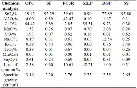 The following components were used for the UHPC mixtures: Portland cement type I 42.5 R; silica fume; recycled glass powder (RGP) with a mean particle size (d 50 ) of 28 µm; fluid catalytic cracking catalyst residue; micro limestone powder (MLP); silica sand, with maximum aggregate size of 0.6 mm; and polycarboxylate ether-based superplasticizer. The water used for mixing and curing was ordinary tap water. The detailed information of used materials is summarized in Table 1, Figs. 3 and 4.