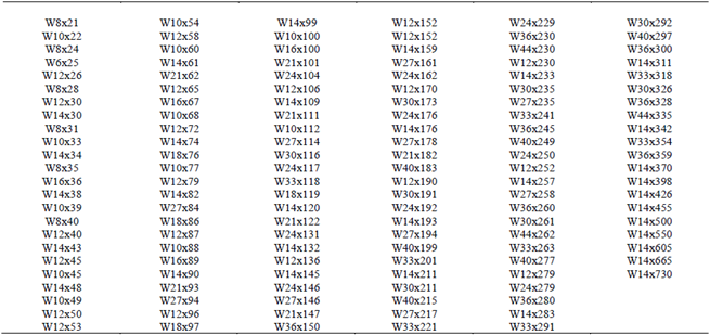 Table 2: Profile list from AISC code for the tower truss.