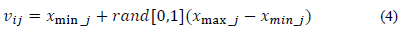 Where j = 1,2, …D, i=1,2…NS and x max-j , x min-j are the upper and lower bounds of the design variable j and rand [0,1] represent a random number between 0 and 1. After initialization of the population, the fitness of each food is evaluated.