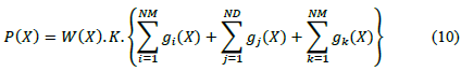 where, A j ,Lj and p j are the cross section area, length and material density of the jth element, respectively. The variable W(A) is the weight of the truss, K is a penalty constant taken as 1.0, and gm with m= i,j,k represent the amount of violation of the corresponding constraint. Each time that a constraint is violated, the value of g m is activated, otherwise it is zero. Eq. (12) presents the objective function to be minimized in the process. Indeed, the constraint optimization problem becomes an unconstrained one by using the penalty approach [5]. The fitness function used in eq. (3) is then determined by 1/W(X)