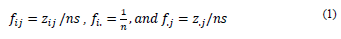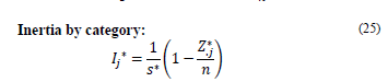 Presented in this section are the expressions of Total Inertia, Inertia by category, and Inertia by question, such that these expressions consider that the available data principle 𝑠 ∗ is used; it is the marginal estimated by row and is replaced in each Inertia expression. The new expressions are presented as follows: