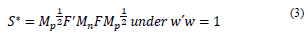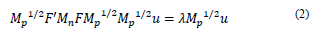 The Lagrangian solution leads to the system of eigenvalues and eigenvectors Su = λu, with S = F´M n FM p and u´M p S u = I = λ, which correspond to the highest eigenvalue.